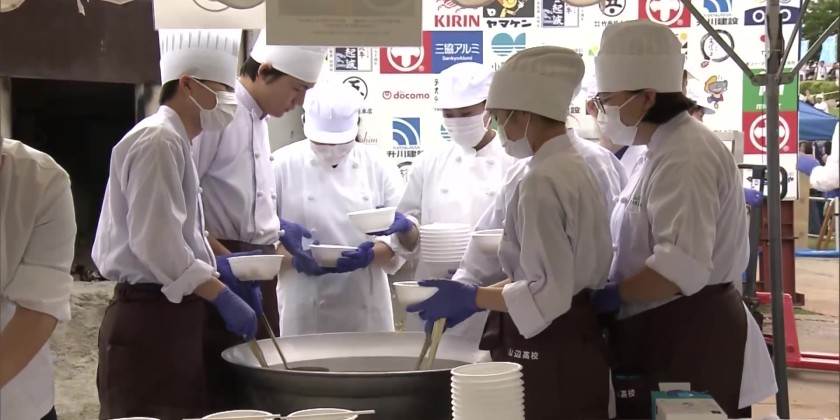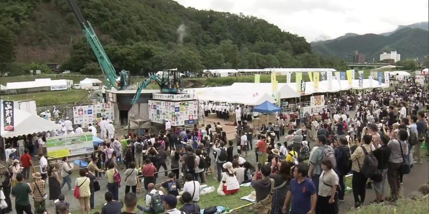 Visitors to an annual outdoor event in Japan's northeastern prefecture of Yamagata have savored a traditional stew cooked in a giant pot. Stewed taro root is a local autumn delicacy. It was cooked in a 6.5-meter-wide pot on a dry riverbed in Yamagata City on Sunday.
