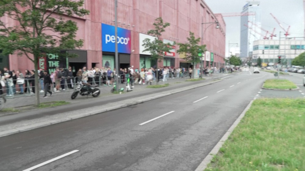People queued outside a mall as Germany's first Labubu store opens in Berlin.