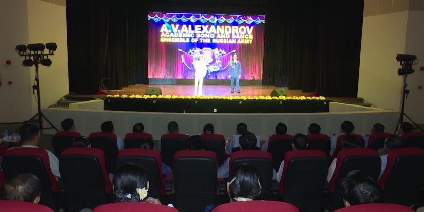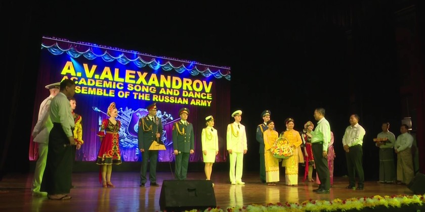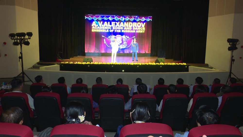 A performance by the A.V. Alexandrov Academic Song and Dance Ensemble of the Army from the Russian Federation was held at the Training Theater located at Office No. (35) in Nay Pyi Taw at 10:00 AM on March 27. The Union Minister for Religious Affairs and Culture, U Tin Oo Lwin, along with deputy ministers and officials from various ministries, attended and supported the event.