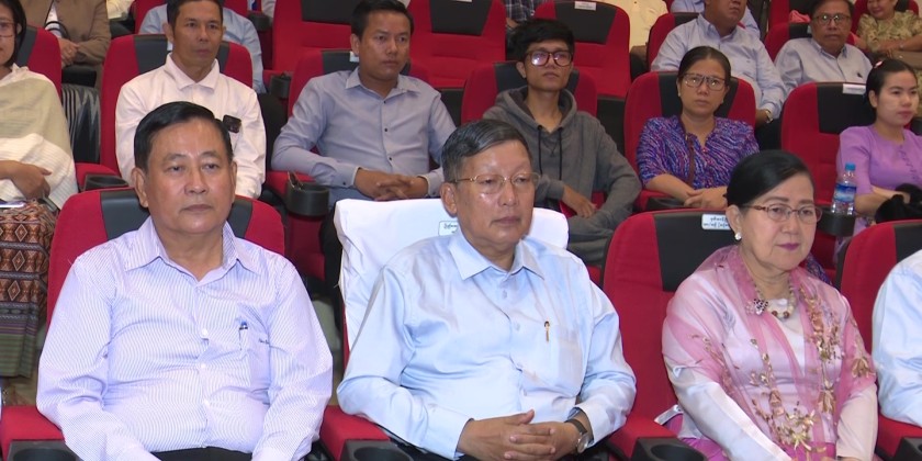 The event took place from 10:00 AM to 11:30 AM. Minister U Tin Oo Lwin honored the artistic group with flower basket of honor and presented them with commemorative gifts.
