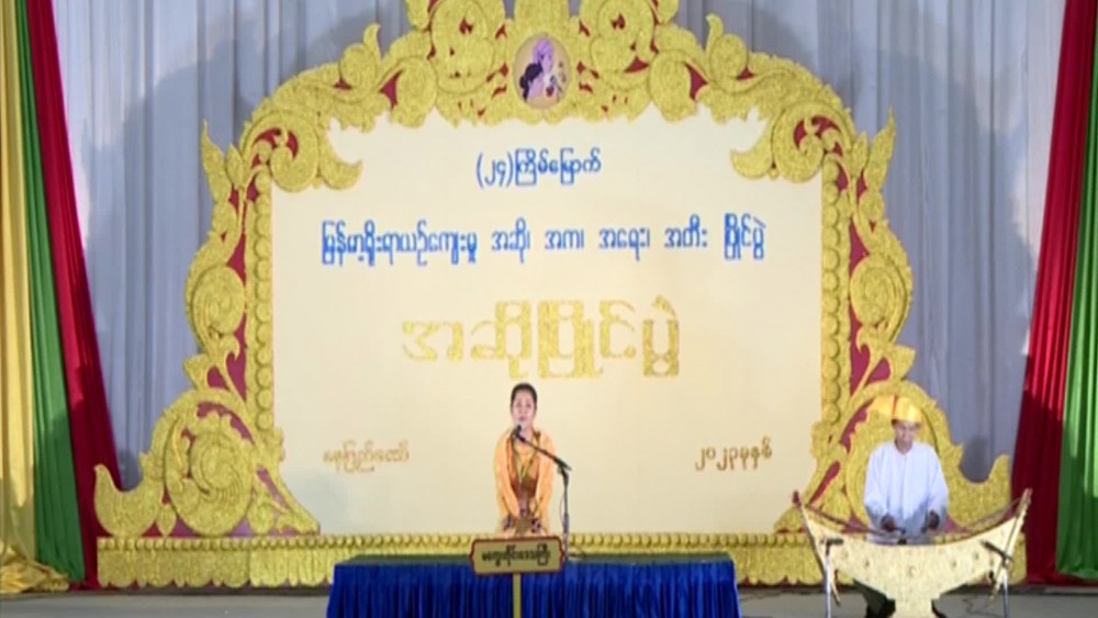 Long drum (Ohe Si) competitions for amateur level (first class) men, basic education level men aged 15-20, amateur level (second class) men were held at WunzinMinYaza hall of the National Library in Nay Pyi Taw. Myanmar orchestra group competitions for amateur level (first class) women, amateur level (first class) men and amateur level (second class) women were held at the training theatre of the Ministry of Religious Affairs and Culture.