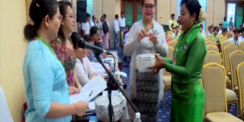 National pride and patriotic spirit uplifting singing competitions for higher education level men, Amateur level (second class) women were held in the Signing Room of the Myanmar International Convention Centre-2.