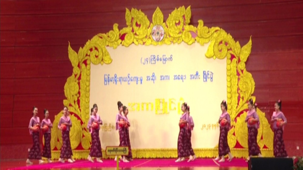 The song chosen for the singing contest promoted national prestige and patriotic fervor. Men contestants in the higher education level category skillfully and melodiously competed, performing the song "Myanma Sate Yin, Myanma Shu Khin."