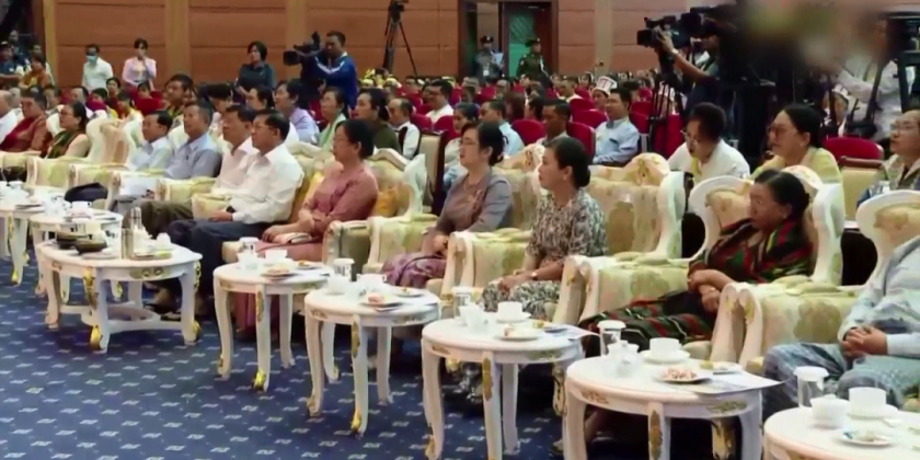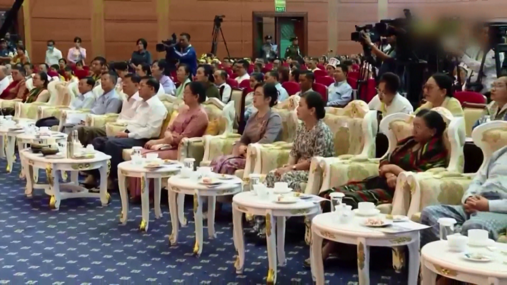Chairman of the State Administration Council Prime Minister Senior General Min Aung Hlaing and wife Daw Kyu Kyu Hla enjoyed the performance of ethnic and rural dance contests.