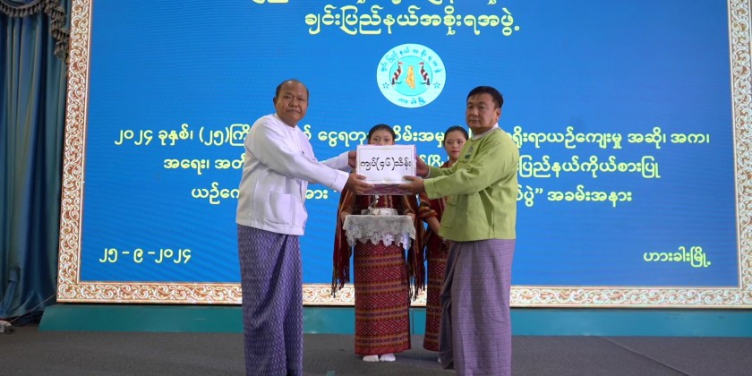 During the ceremony, 4.6 million kyats cash assistance and victory flag were presented to the representative team. Then, the attendees enjoyed the performance of Min Dat Chin Traditional Dance by the representative team.
