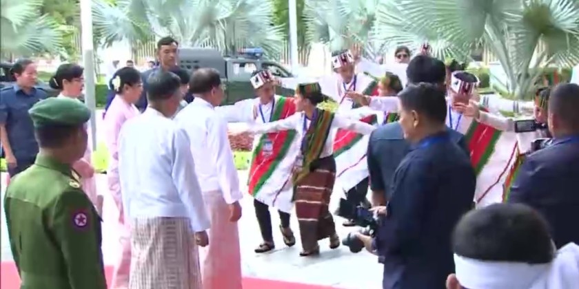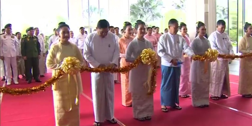 Prior to the event, they were welcomed by the traditional ethnic dances. Then, SSPC Vice-Chairman, Vice-Senior General Soe Win, Patron of the leading Committee Prime Minister U Nyo Saw, and Chairman of the organizing committee, Union Minster for Religious Affairs and Culture U Tin Oo Lwin, opened the ceremony by cutting the ribbon.