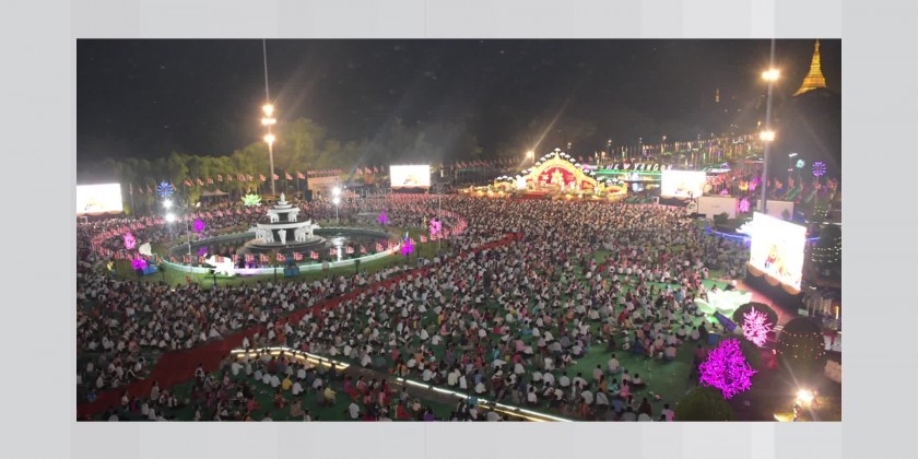 The DhammaThabin, organized by the Regional Government, spanned three days at the People’s Square in Dagon Township, with the iconic Shwedagon Pagoda providing a majestic backdrop. Charity feasts were served to all attendees throughout the event.