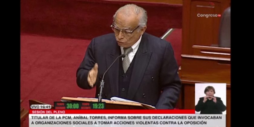 Peru's Prime Minister, Anibal Torres, testified Thursday before Congress over alleged statements in which he encouraged social organizations to shut down Congress.