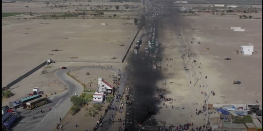 In Pisco and Viru, trucks and buses were seen moving slowly through a crowd of protesters. The striking agricultural workers for the most part work in the grape vineyards that are used to make pisco and wine for export.