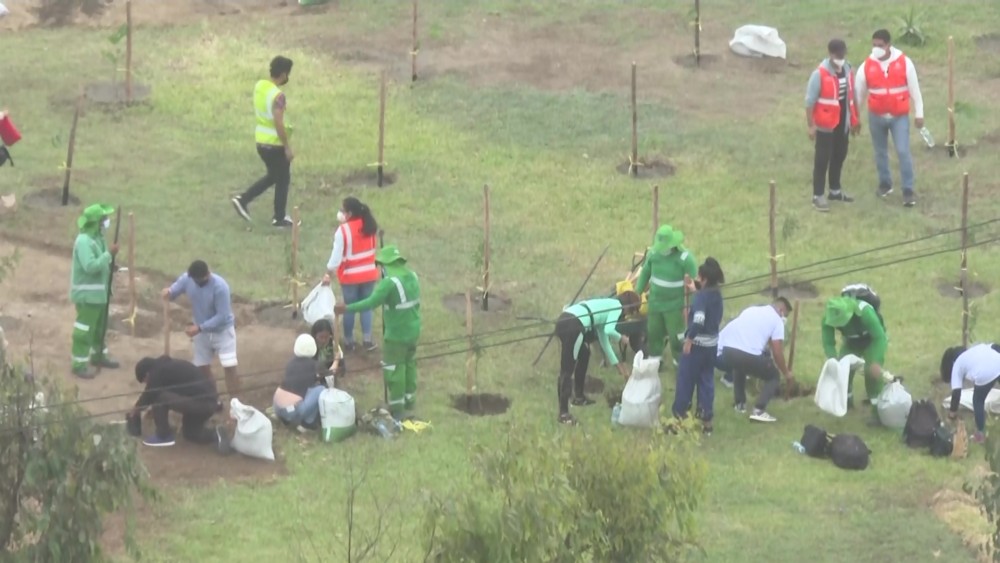 Peruvian volunteers on Friday planted trees to mark Earth Day 2022. Dozens of volunteers planted more than 400 trees on more than 4,000 square meters to combat the desertification that threatens the area.