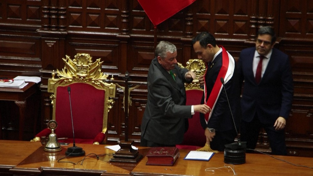 Peru's Congress leader Jose Jeri was sworn in as the country's president early on Friday, shortly after the Congress removed former President Dina Boluarte from office. Peru's lawmakers demanded Boluarte appear at a Congress session to defend herself before voting to approve her impeachment on Thursday night. But Boluarte did not attend the meeting. The Congress passed the impeachment against her shortly afterwards.