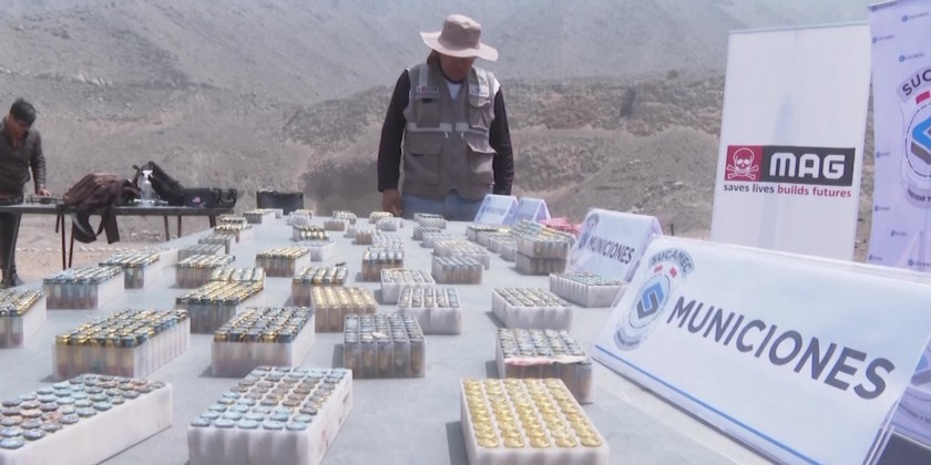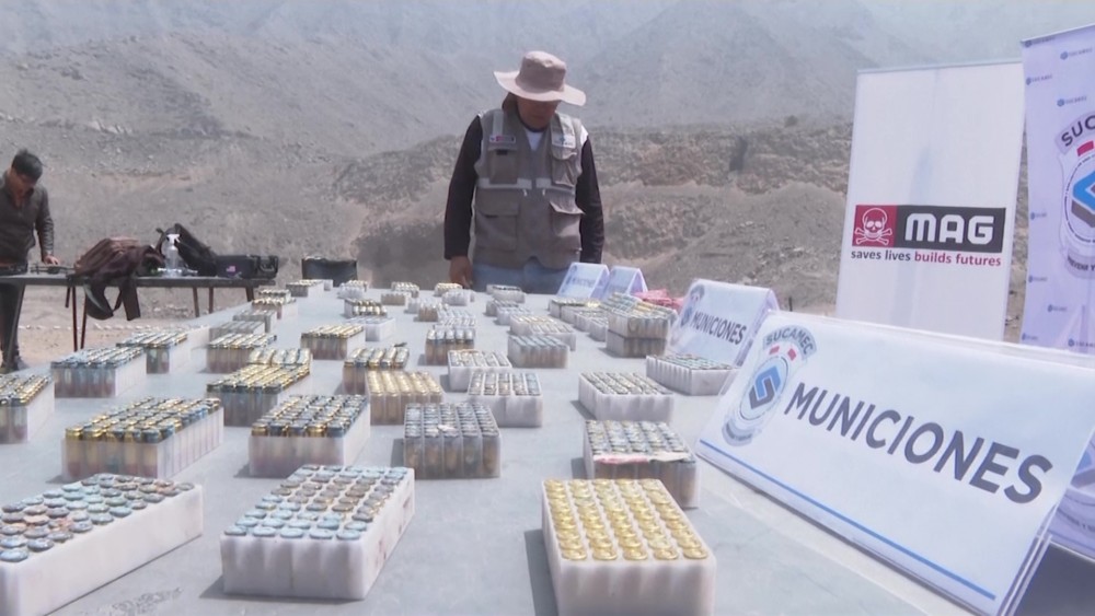 The live ammunition destroyed was part of years of military-grade material seized that over time could be defective, meaning authorities can't use and instead need to destroy. It is the first time Peruvian authorities have reported on destroying firearms, and it is part of a campaign of the Peruvian army with the US Department of State and the British NGO Mines Advisory Group.