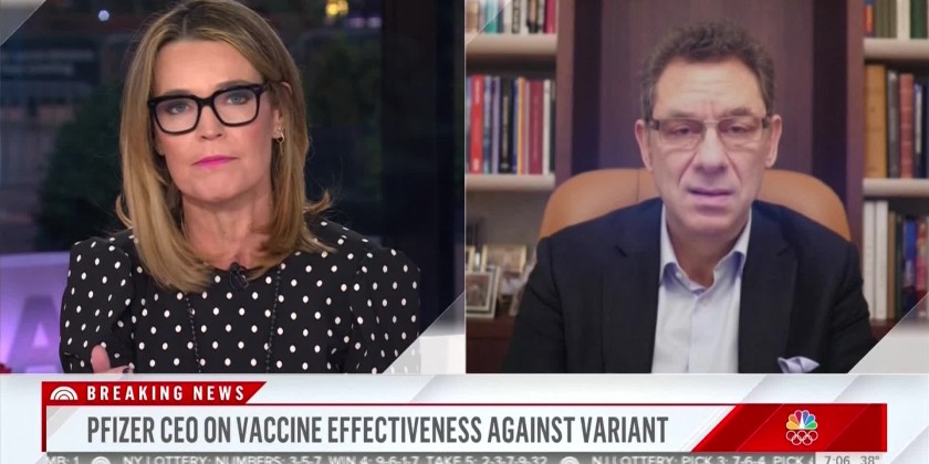Albert Bourla, Pfizer CEO said "It's very good news preliminary because we are waiting to see more data, more accurate data with the more accurate essays that will come in a week or two. And then, of course, real world data. But so far, it looks like a third booster improves dramatically the efficacy of it."