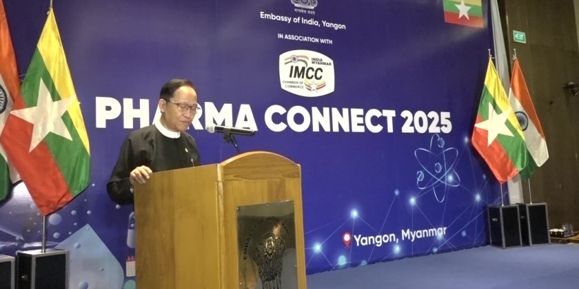 Union Minister for Health Dr. Thet Khaing Win attended and delivered an opening address at Pharma Connect 2025, organized by the Embassy of the Republic of India in Myanmar and the India-Myanmar Chamber of Commerce, held at the Pan Pacific Hotel in Yangon in the evening of July 25.