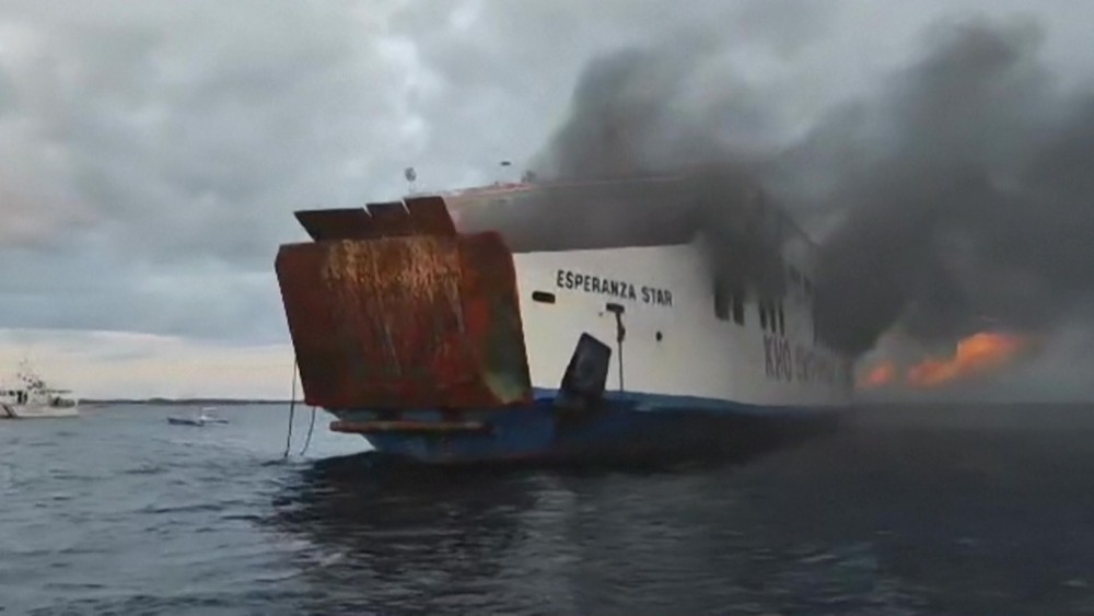 The Philippines' coast guard says all people on board the ill-fated vessel have been rescued. It took the Philippine coast guard over five hours to extinguish the fire.
