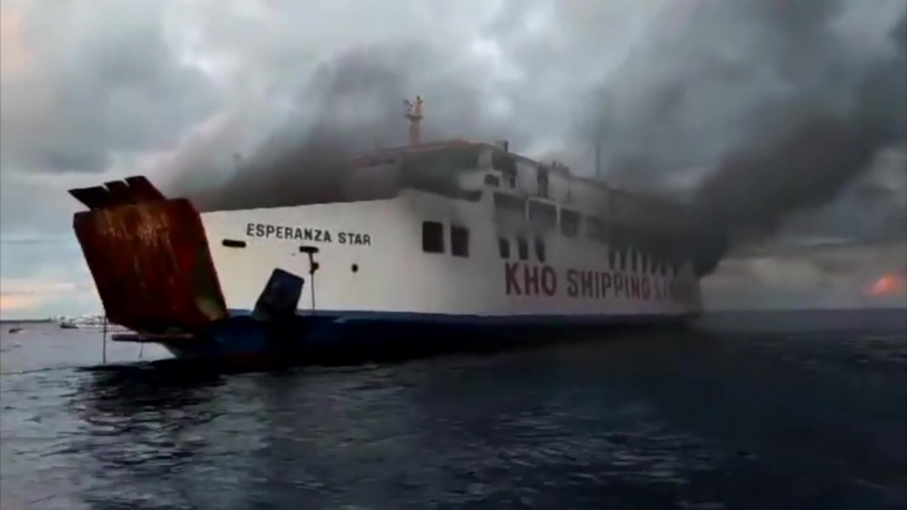 The M/V Esperanza Star (ferry) caught fire while traveling from Siquijor province to Bohol province, the coast guard said. The were no reported injuries. The Philippine Coast Guard confirmed the fire was out by 10 am local, adding that a broader investigation into the incident will follow.