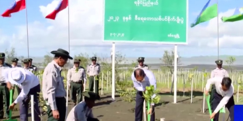 He viewed the growing of 1,500 mangrove plants at Shukhintha beach in Sittway at the 2023 mangrove plant growing ceremony. The Forest Department will grow 35,000 mangrove plants along Shukhintha beach.