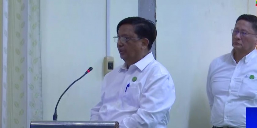 Chairman of Myanmar Economic Corporation Lt-Gen Nyo Saw reported on checking machines and tools to re-operating of the mill, arrangements for repairig, factory and plantations and the ways for getting energy.