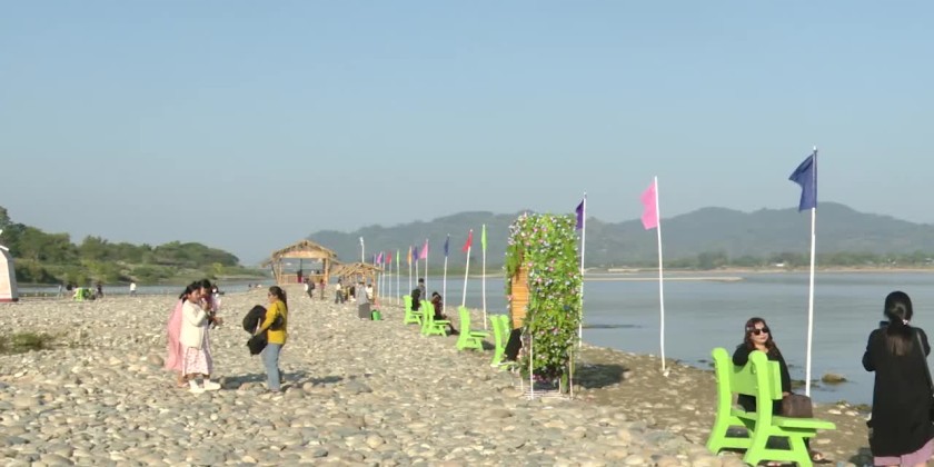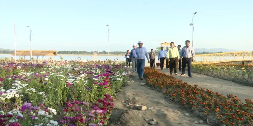 During the inspection, the Chief Minister and party traveled to the island by speed boatsof the fire brigade. They observed the conditions of crops grown using the solar-powered water pumping system on sandy fields of the island, including sunflower fields and vegetable plantations. They also observed migratory birds seeking shelter on the sandy dunes of the river island.