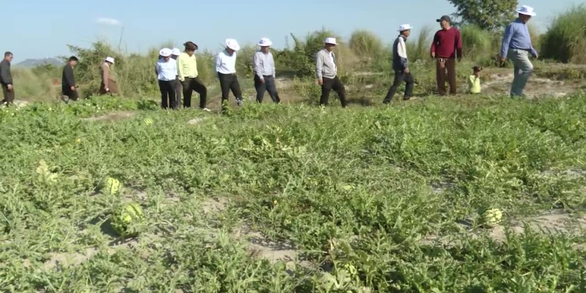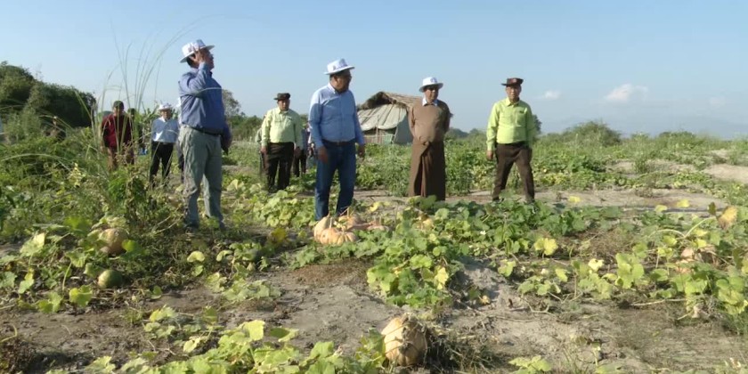 The Kachin State Chief Minister U Khet Htein Nan, inspected agricultural activities on Naung Ta Law Island in the Ayeyarwady River on the evening of January 20.