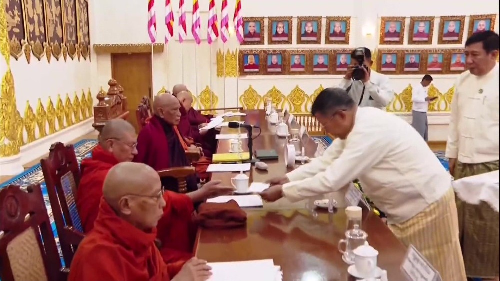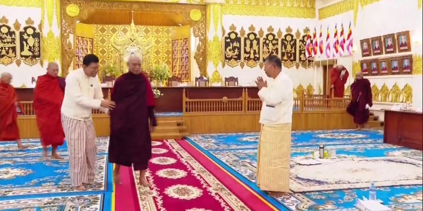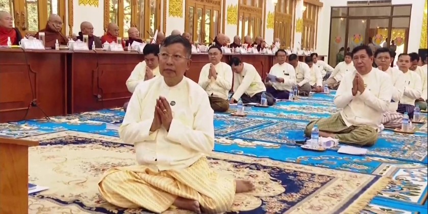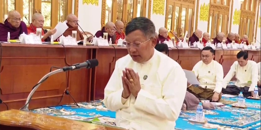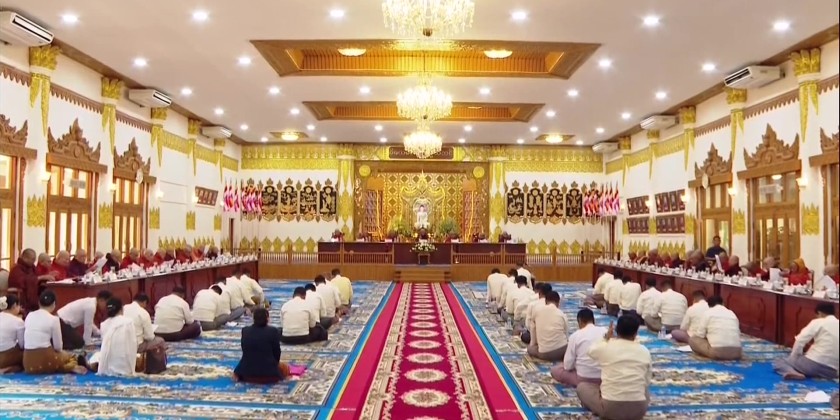 Chairman Sayadaw of State Sangha Mahanayaka Committee, Thanlyin Min Kyaung Pahtamabyan Sarthintaik  Sayadaw Dr Bhaddanta Candimabhivamsa  presided over the meeting and Joint Secretary Sayadaw Agga Maha Pandita Agga Maha Saddhamma Jotika Bhaddanta Jotissara  acted as the master of ceremonies. First, the State Sangha Maha Nayaka Committee Chairman Sayadaw recited Saraniya Ovada Katha  to start the meeting.