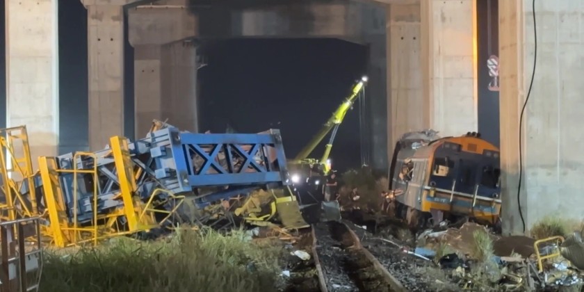 A massive crane segment from the high-speed railway project collapsed onto a passenger train in Sikhio district on Wednesday morning. The train, carrying 171 passengers from Bangkok to Ubon Ratchathani, was traveling at 120 km/h when the machinery struck the second and third carriages, sparking a fire.