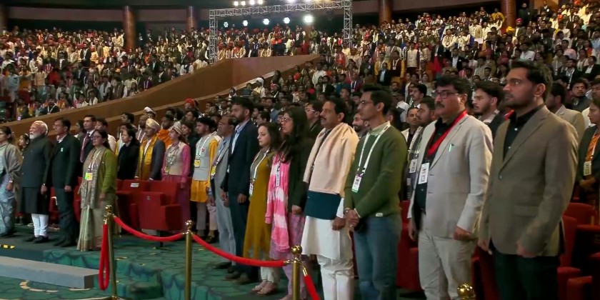 Prime Minister, along with Union Minister Mansukh Mandaviya, led the gathering in singing ‘Vande Mataram, as thousands of young leaders from across India and international delegates joined in, creating a strong sense of unity and patriotism. In his speech, Prime Minister hailed the spirit of India’s new Gen Z and its commitment to building a developed India.