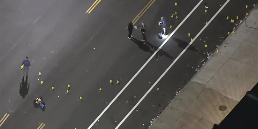 Police said gunmen emerged from a black vehicle parked in the middle of the block and struck nine people with about 40 shots fired.