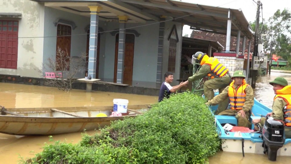 In response, local police forces are actively aiding residents in their fight against the floods. In Le Thuy district, communal police have mobilized to prepare for the crisis, helping people secure their belongings and evacuate to safe areas.