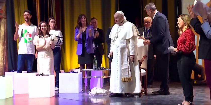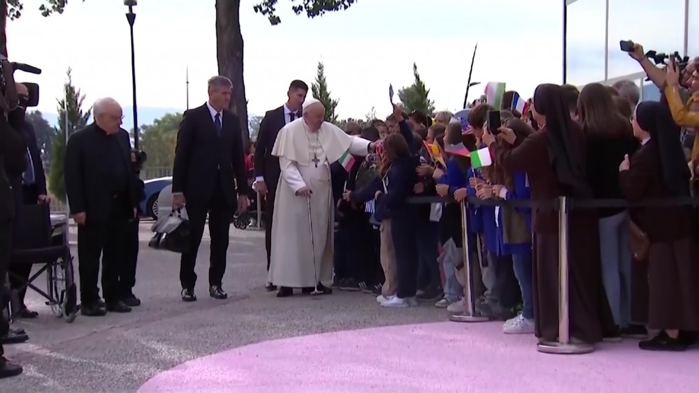During his brief visit to the hill town in central Italy, Francis called for "courage" in abandoning fossil fuels. He said he was pinning much hope on the young because older generations didn't know how to protect the planet and to secure peace.