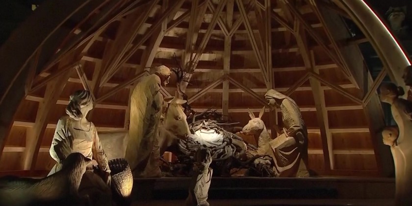 When the Mass ended, the pope, using a wheelchair pushed by an aide, moved down the basilica with a life-sized statue of Baby Jesus on his lap and flanked by several children carrying bouquets. The statue then was placed in a manger in a creche scene in the basilica.