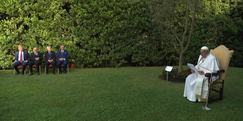 Pope Francis holds a prayer for peace in the Holy Land in the Vatican gardens, attended by the Israeli and Palestinian ambassadors to the Holy See.