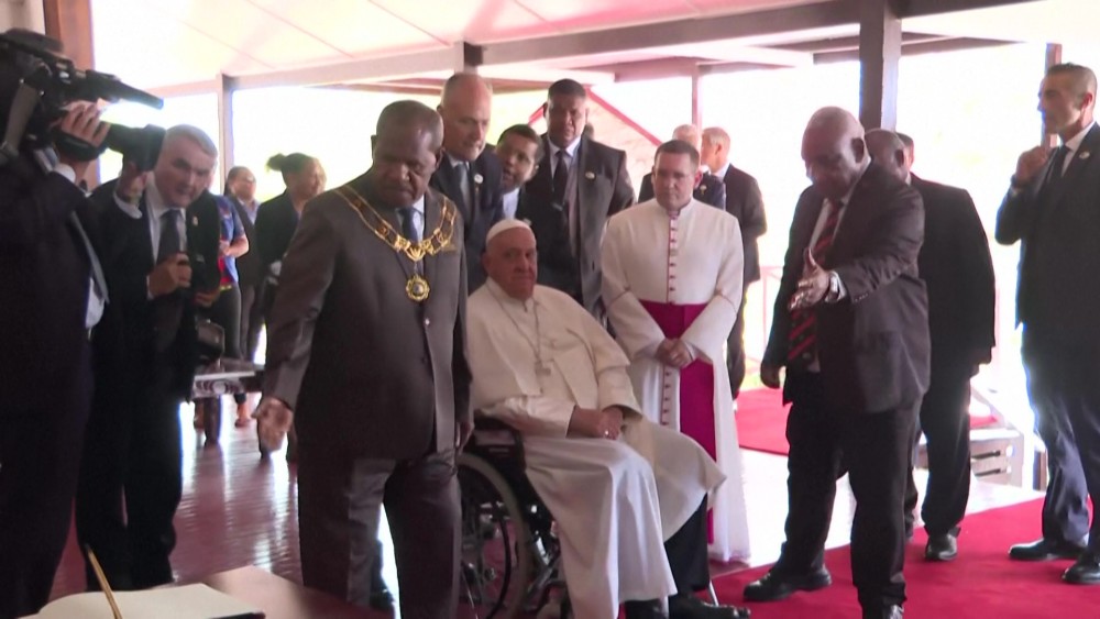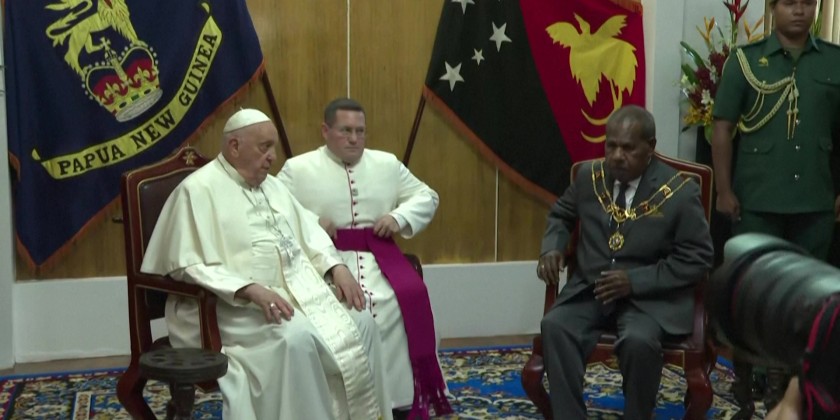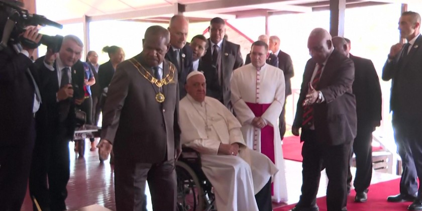 Pope Francis met with Papua New Guinea's governor-general Bob Dadae in Port Moresby on Saturday, as the pontiff visits the country on a landmark visit.