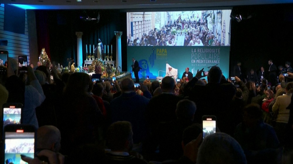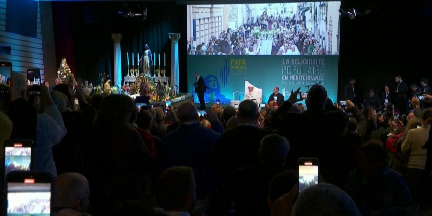 Local authorities said around 12,000 people had turned out to greet the pope. During his trip to Corsica, Pope Francis gave a speech at the concluding session of the 'Popular Religiosity in the Mediterranean' Congress speaking about the relationship between the secular and religious worlds.