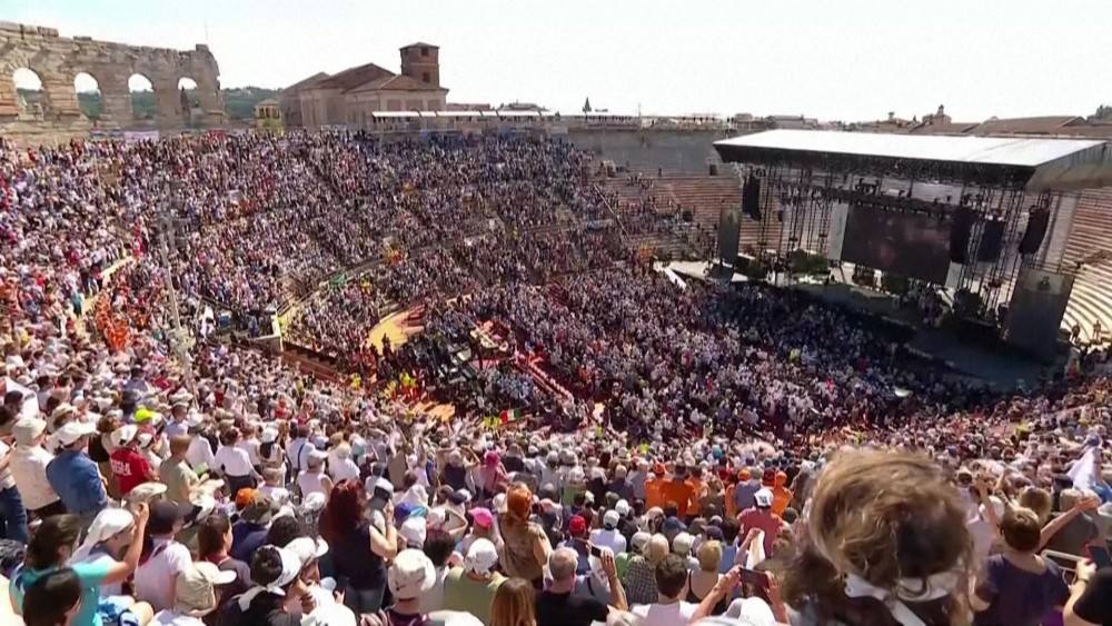 Pope Francis landed in Verona to take part in the Arena for Peace, an initiative promoted to call for a ceasefire and the protection of refugees and civilian populations. He also visited the faithful of this northern Italian city. His first stop was the Basilica of St. Zeno, where he was welcomed with applause by religious and consecrated people. Once inside, the Pope stopped to pray before the relics of the patron saint of Verona.