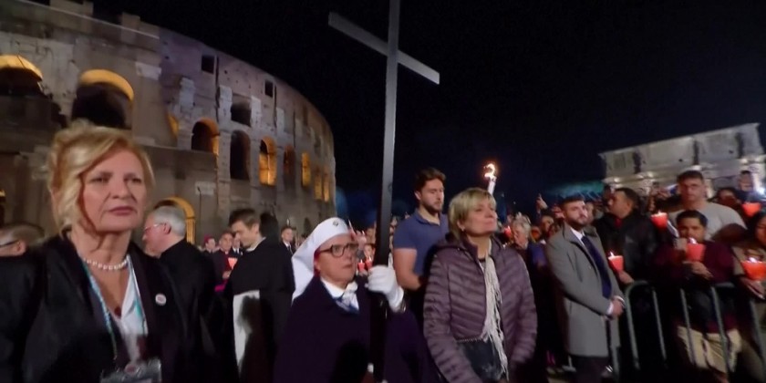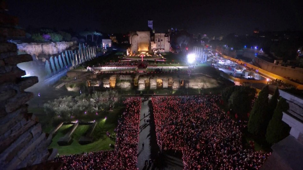 His armchair had been set out on the hill facing the Colosseum in Rome, where the ceremony was held, but was taken away as the announcement was made just moments before the start."To preserve his health ahead of tomorrow's vigil and the Easter Sunday mass, Pope Francis will this evening follow the Way of the Cross at the Colosseum from the Santa Marta Residence" where he lives, the Vatican said in a statement.