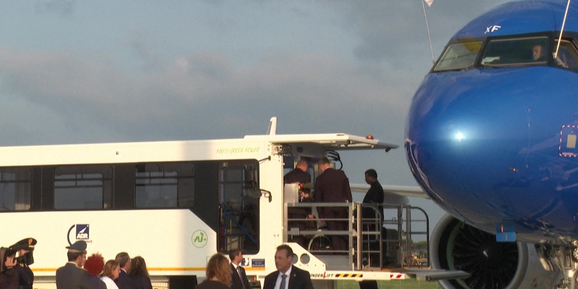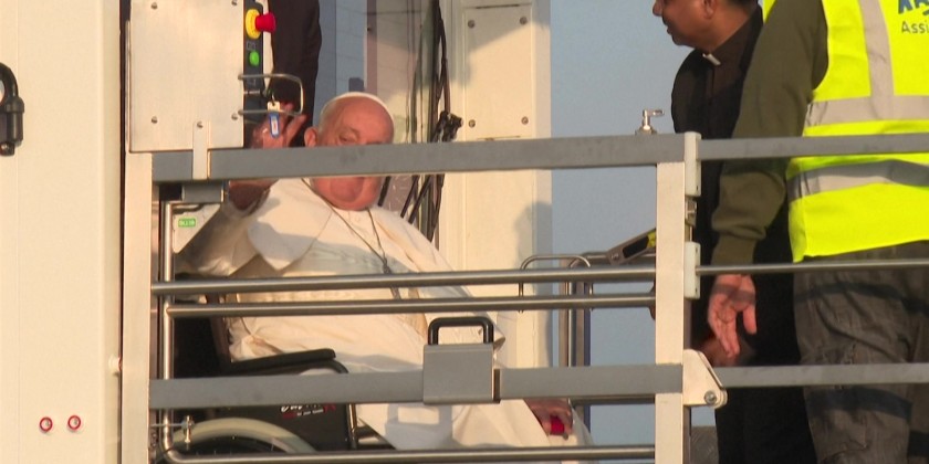 Pope Francis took off from Rome's Fiumicino airport to pay a rare visit to Luxembourg before heading to Brussels on Thursday to discuss Europe's role in the world.