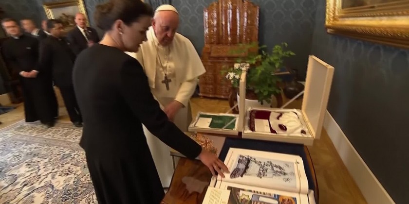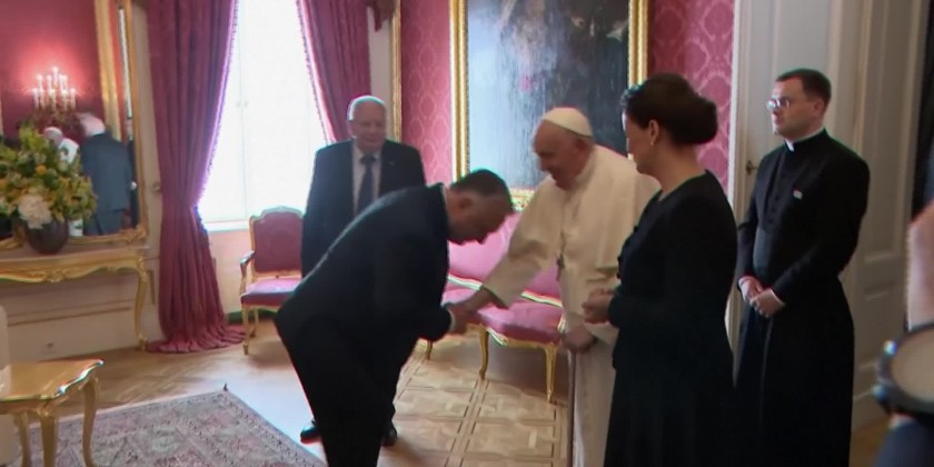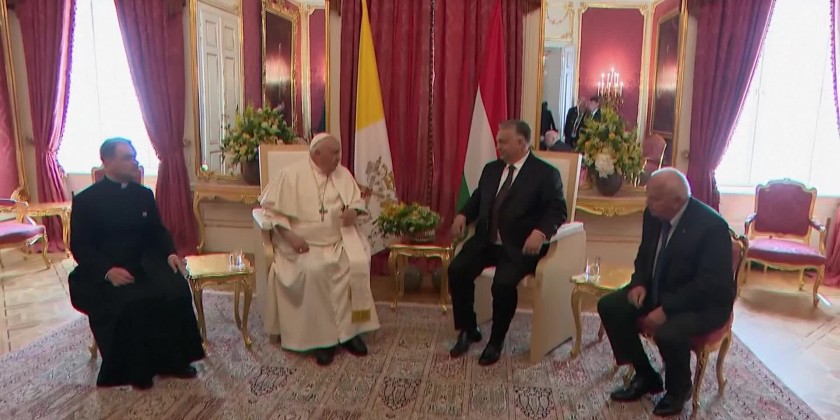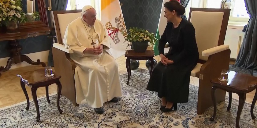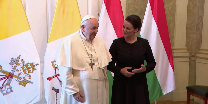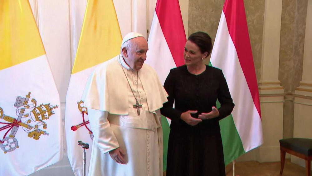 Pope Francis met Friday with Hungarian President Katalin Novak and Hungarian Prime Minister Viktor Orban upon his arrival in Budapest at the start of a three-day visit. Francis was first hosted by Novak at the Sandor Palace in the capital, where he signed the guest book.
