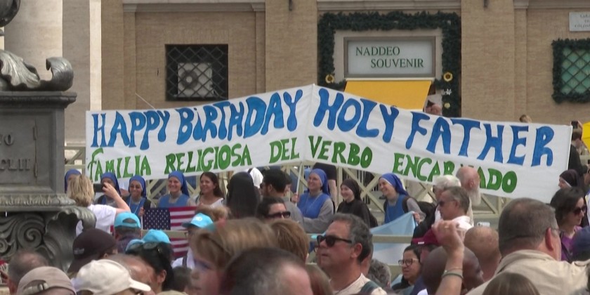 Pope Leo XIV celebrated his 70th birthday on Sunday, four months after his election as the 267th successor of St. Peter. In St. Peter’s Square, the faithful greeted him with banners, balloons, and congratulatory signs during his traditional noon blessing.