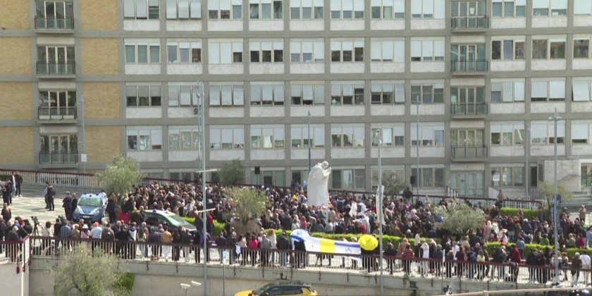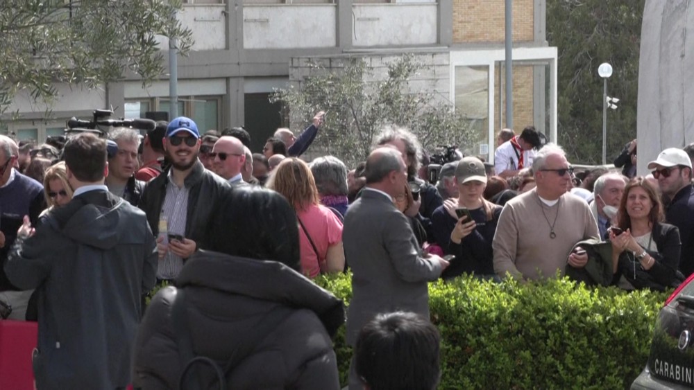 "Thank you, everyone," he said in a weak voice into a microphone, expressing his gratitude to the hundreds of people gathered to see him. The Pope had been hospitalized since February 14 due to a severe respiratory infection, including double pneumonia, and had experienced two critical respiratory crises requiring extensive oxygen and ventilatory support.