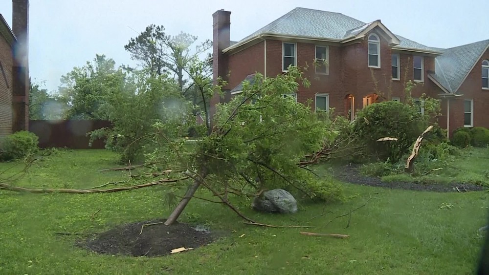 The City of Virginia Beach declared a state of emergency after a tornado moved through the area Sunday and damaged dozens of homes, downed trees and caused gas leaks. City officials estimated between 50 and 100 homes were damaged after the tornado touched down just after 6 p.m.