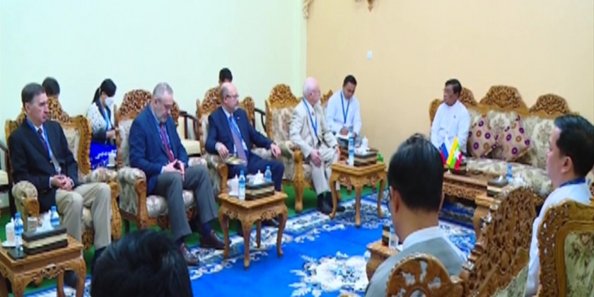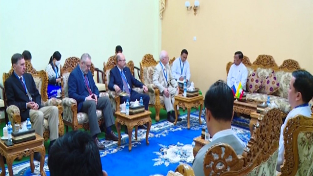 Union Minister for Electric Power U Thaung Han met a Russian delegation led by Senior Vice-President of the Russia-Myanmar Association for Friendship and Cooperation Mr Anatoly Bulochnikov at the Minister office in Nay Pyi Taw on Monday.