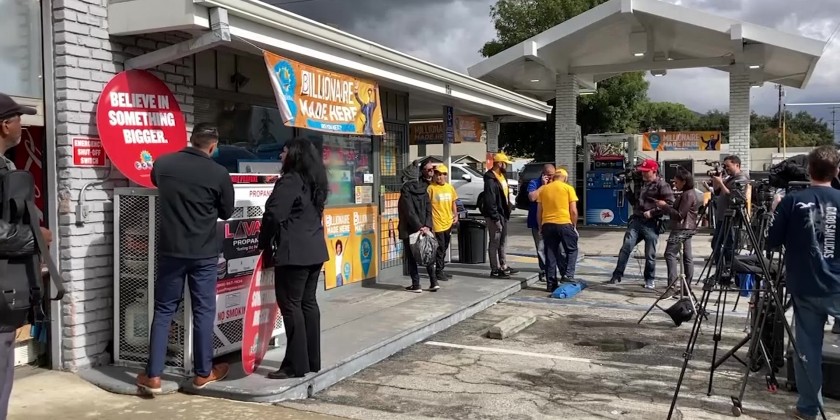 Someone who bought a Powerball ticket in Southern California has won a record 2.04 billion USD Powerball jackpot. The winning numbers drawn Tuesday morning at the Florida Lottery draw studio in Tallahassee were white balls 10, 33, 41, 47 and 56, and the red Powerball was 10. The jackpot ticket was sold at Joe's Service Center in Altadena, an unincorporated community in the foothills northeast of Los Angeles.