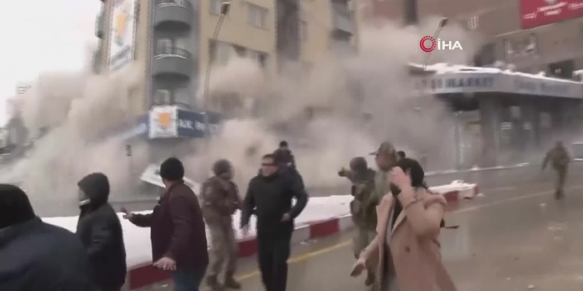 A building collapsed in Diyarbakir, Turkey on Monday as rescuers nearby were searching for survivors after strong earthquake on early Monday. The earthquake toppled hundreds of buildings and killed more than 1,900 people in both Turkey and Syria.Hundreds were still believed to be trapped under rubble, and the toll was expected to rise as rescue workers searched mounds of wreckage in cities and towns across the area.
