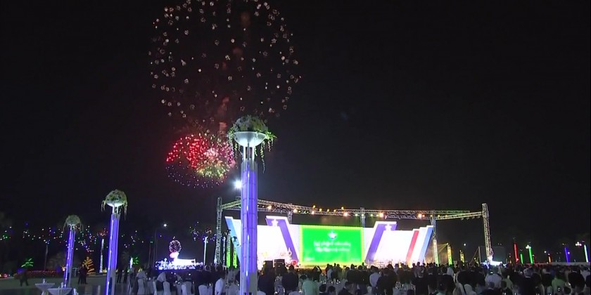 At the start of pre-dinner, fireworks in commemoration of the 79th Anniversary of Armed Forces Day were launched from the Armed Forces Day Parade Ground and Bayintnaung Villa.