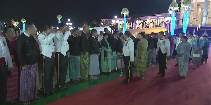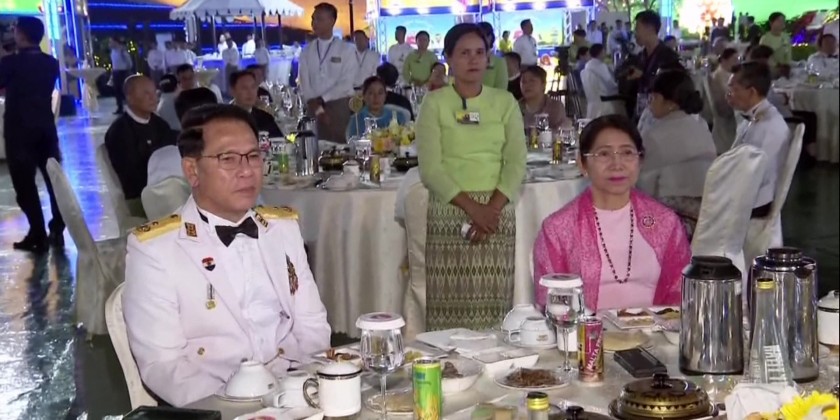 The State Administration Council Chairman Commander-in-Chief of Defence Services Senior General Min Aung Hlaing and wife Daw Kyu Kyu Hla hosted the pre dinner in honour of the 79th Anniversary of Armed Forces Day 2024 at the square of Zeyathiri Beikman in Nay Pyi Taw in the evening on 26th March.