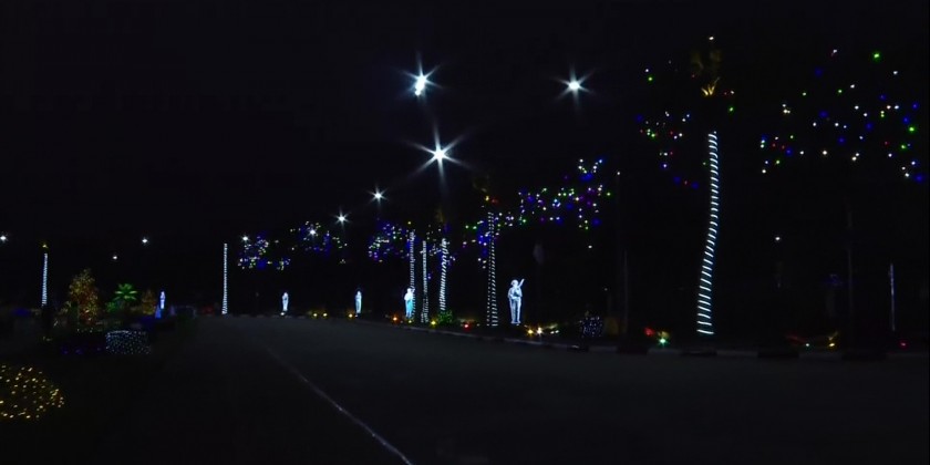 In honoring the commemoration of 79th Armed Forces Day, along the entrance road to the compound of the Commander In Chief (Army), the ornamental lightings are being put on the emblems and badges of Tatmadaw (Army, Navy, Air) and military commands, replicas of Warship, Helicopter, armoured vehicles and the statues of three Kings who founded the first, second and third Myanmar and the attendees to the pre-diner also watched the lightings happily.
