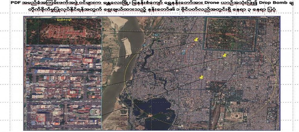 They have plans to explode water throwing pandal near Ocean Supercenter at the west of Mandalarthiri football ground, Thingyan padals in front of Mandalay Palace moat and crowded areas during Thingyan festival. Even they have chosen 3 places within one mile area of Mandalay Palace to attack Mya Nan San Kyaw palace with drop bomb using drone.