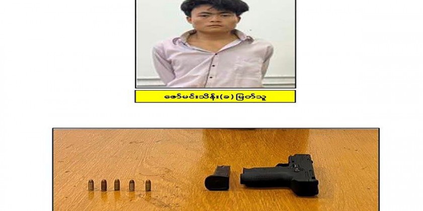Acting on tip-off, the security forces captured member of Special Task Force-STF PDF Zaw Min Thein (a) Myat Thu with a Glock pisto, one magazine and 5 rounds of .380 bullets in Mya Yi Nandar Housing, Chammya Tharsi Township, and Mandalay Region in the evening on 6th April, 2023.