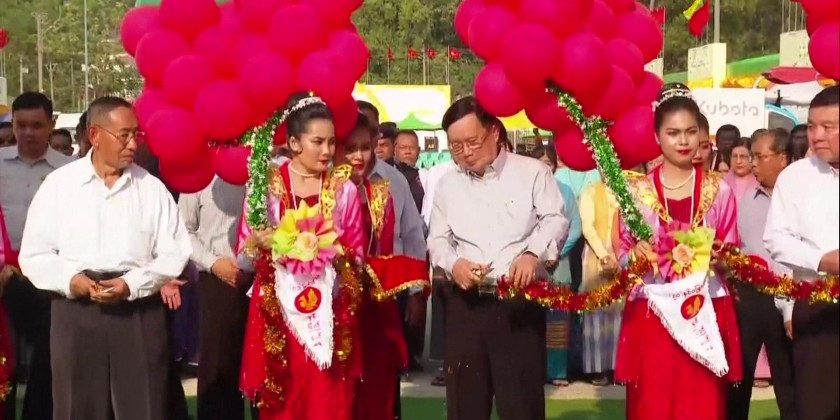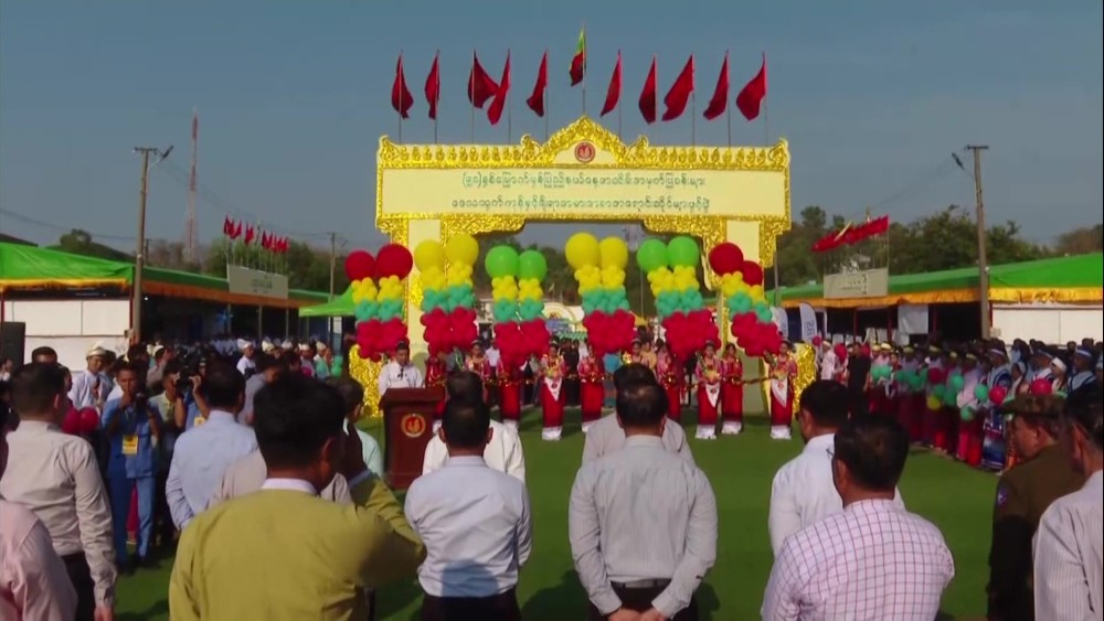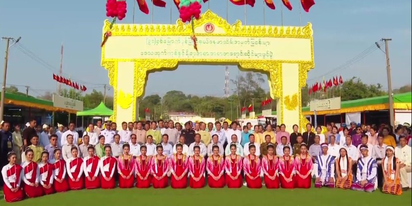 Subsequently, General Aung Lin Dwe, accompanied by State Administration Council members Mann Nyein Maung and Khun San Lwin, Mon State Chief Minister U Aung Kyi Thein, and Commander of Southeast Command Major General Kyaw Lin Maung, officially opened the exhibition by cutting the ribbon. They then took a group photo with attendees of the ceremony.